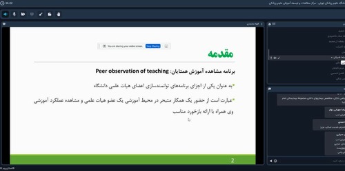 به گزارش روابط عمومی مرکز مطالعات و توسعه آموزش واحد توانمندسازی اعضای هیات علمی دانشگاه: در راستای اجرای برنامه مشاهده آموزش همتایان (ماه) اولین جلسه توجیهی ویژه مشاهده گران در روز یکشنبه تاریخ 5 مردادماه سال جاری به صورت مجازی در پلت فرم اسکای روم برگزار شد.