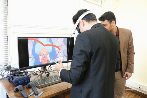 از مهمترین بخشهای این بازدید، دموی سه نرمافزار تخصصی در حوزه شبیهسازی بود که بهصورت عملی برای اعضای هیأت علمی نمایش داده شد. این نرمافزارها شامل: نرمافزار احیا نرمافزار آموزش گذاشتن لوله تراشه انتوباسیون نرمافزار کولونوسکوپی علاوه بر معرفی این نرمافزارها، تمامی توانمندیهای فنی مرکز به اساتید معرفی شد. دوربین ۳۶۰ درجه که قابلیت ثبت تصاویر فراگیر را دارد، به همراه عینکهای پیشرفته واقعیت مجازی، شامل عینک کوئست (Quest) و عینکهای HTC، مورد بررسی و تست قرار گرفتند.