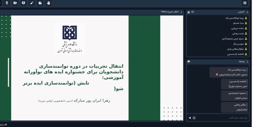 به گزارش واحد توانمندسازی و مشارکت آموزشی دانشجویان، هشتمین جلسه از مدرسه جامع کشوری تابش «توانمندسازی ایده برتر شو» در روز شنبه ۸ آذر ۱۴۰۴ به صورت برخط و در بستر اسکای روم برگزار شد.